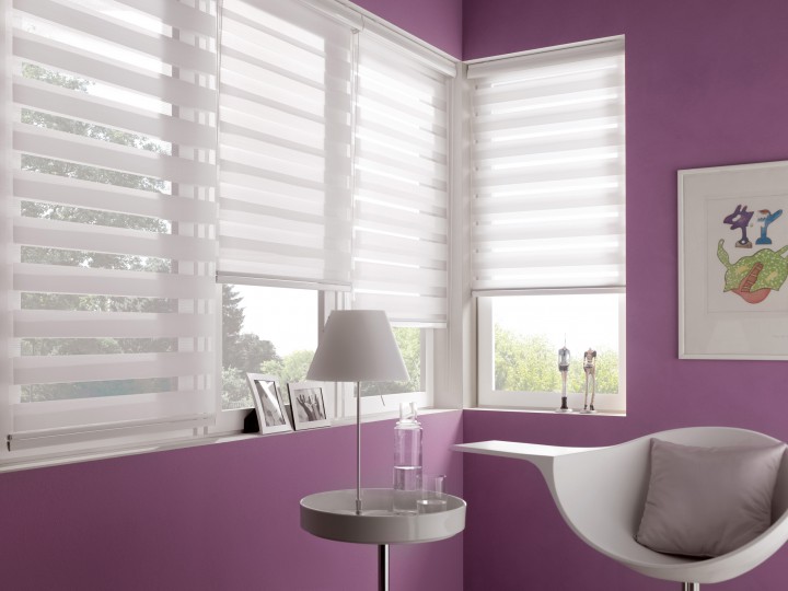 A textilek felületén sötétítő és fényáteresztő csíkok váltják egymást, így a két egymást követő sáv segítségével szabályozhatjuk a beáramló fény mennyiségét és az átláthatóságot. Ha kedvünk tartja, akár teljesen betekerhetjük a textilt a tokba.