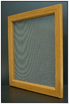 A háló egy extrudált alumínium profilú 30 x 22 mm-es keretben fut.